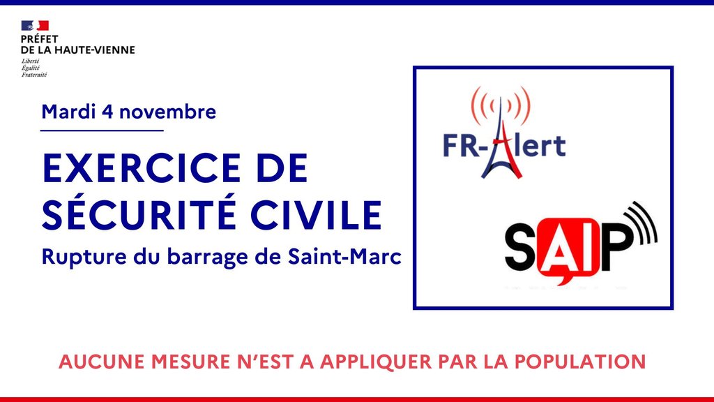 Mardi 4 novembre 2025, la Préfecture de la Haute-Vienne organise un exercice de rupture du barrage de St Marc, pour tester la mise en œuvre du Plan Particulier d’Intervention (PPI).