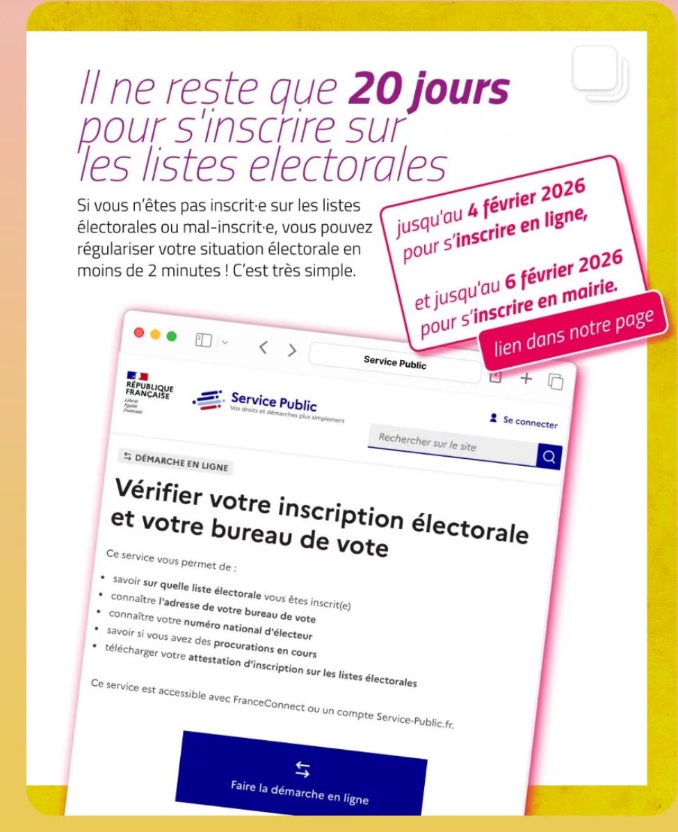 Pour y participer, vérifiez ou mettez à jour votre inscription sur les listes électorales dès maintenant.