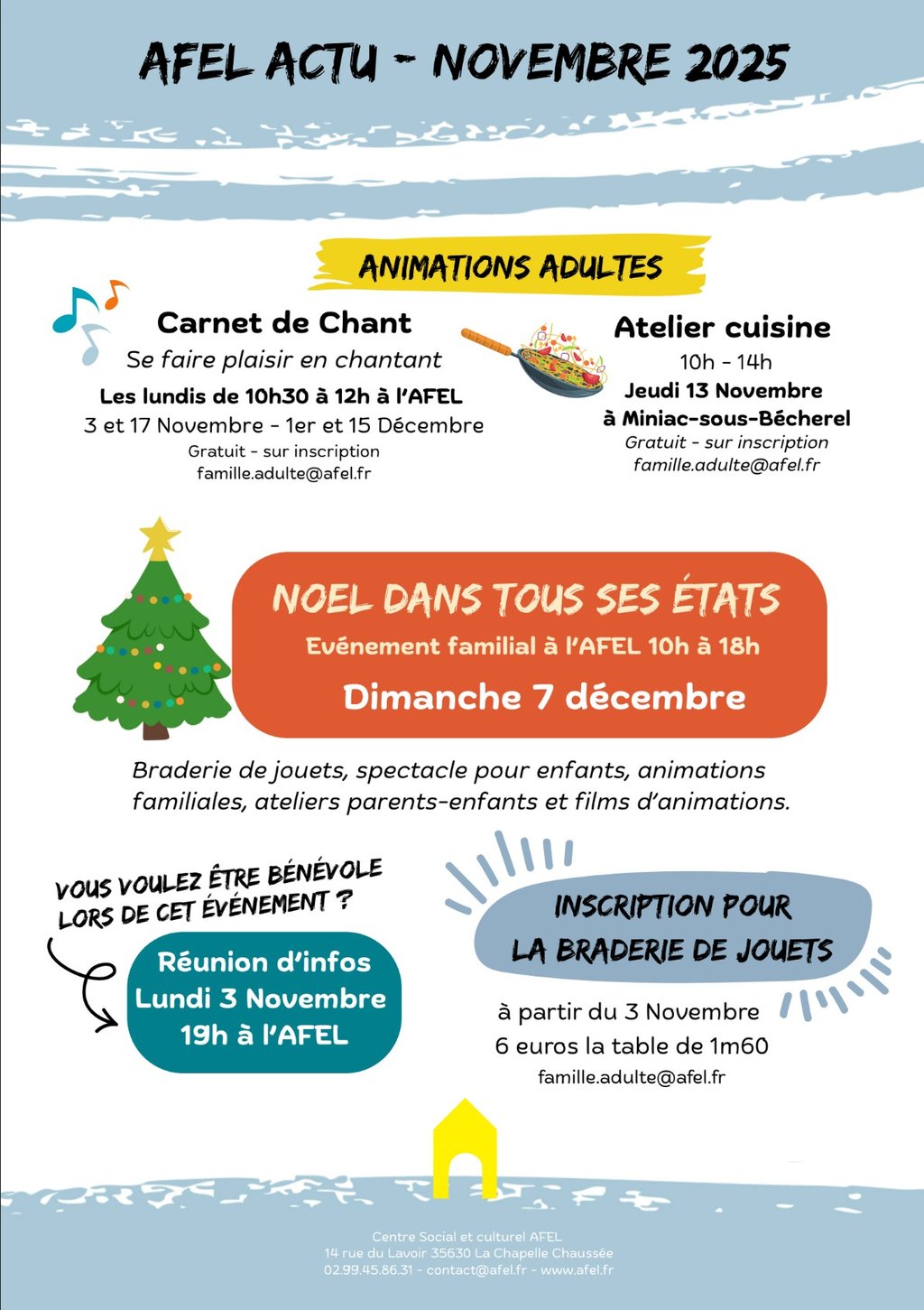 Notre commune bénéficie d'une convention avec l'AFEL (tarifs préférentiels, animations locales).