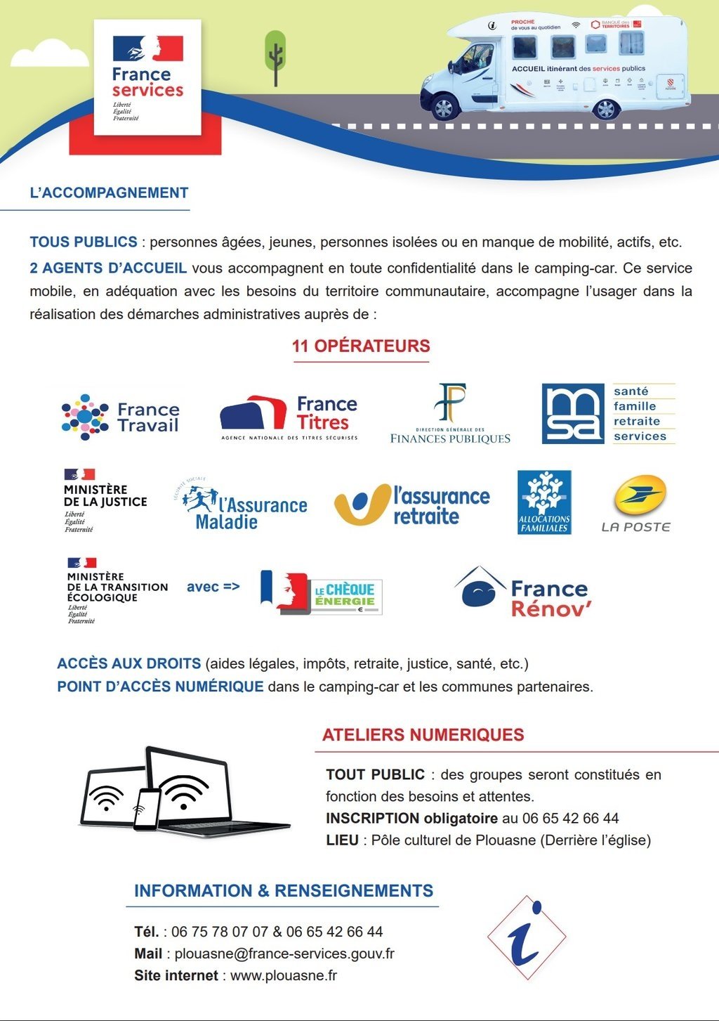 Le Camping-car de France Services sera sur le parking de la mairie de 13H30 à 16H30.