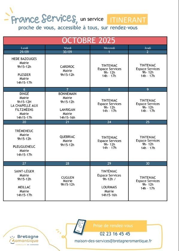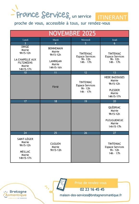 - Une ligne est proposée pour joindre France Services Itinérant de Bretagne romantique : 02 23 16 45 45
