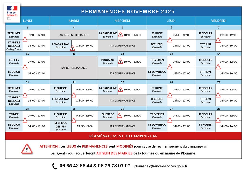 PERMANENCE FRANCE SERVICES À SAINT BRIEUC DES IFFS LE 25 NOVEMBRE