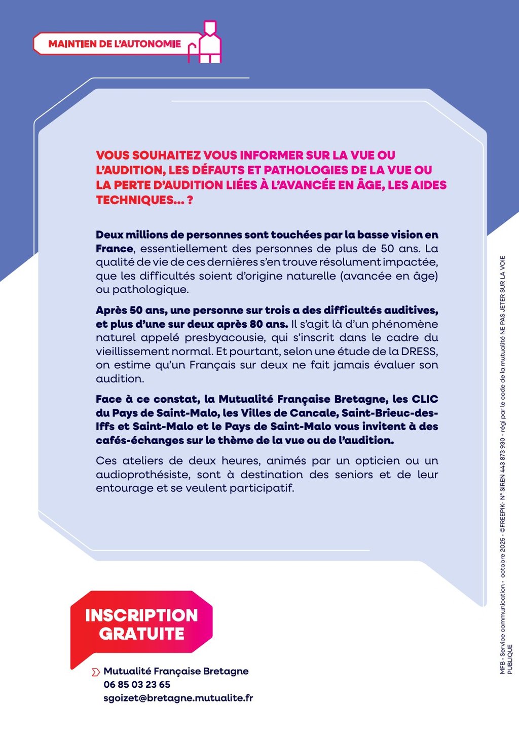 La Mutualité Française Bretagne, en partenariat avec le CLIC, la commune et le Pays de Saint-Malo, organise deux rencontres santé gratuites à la salle communale.