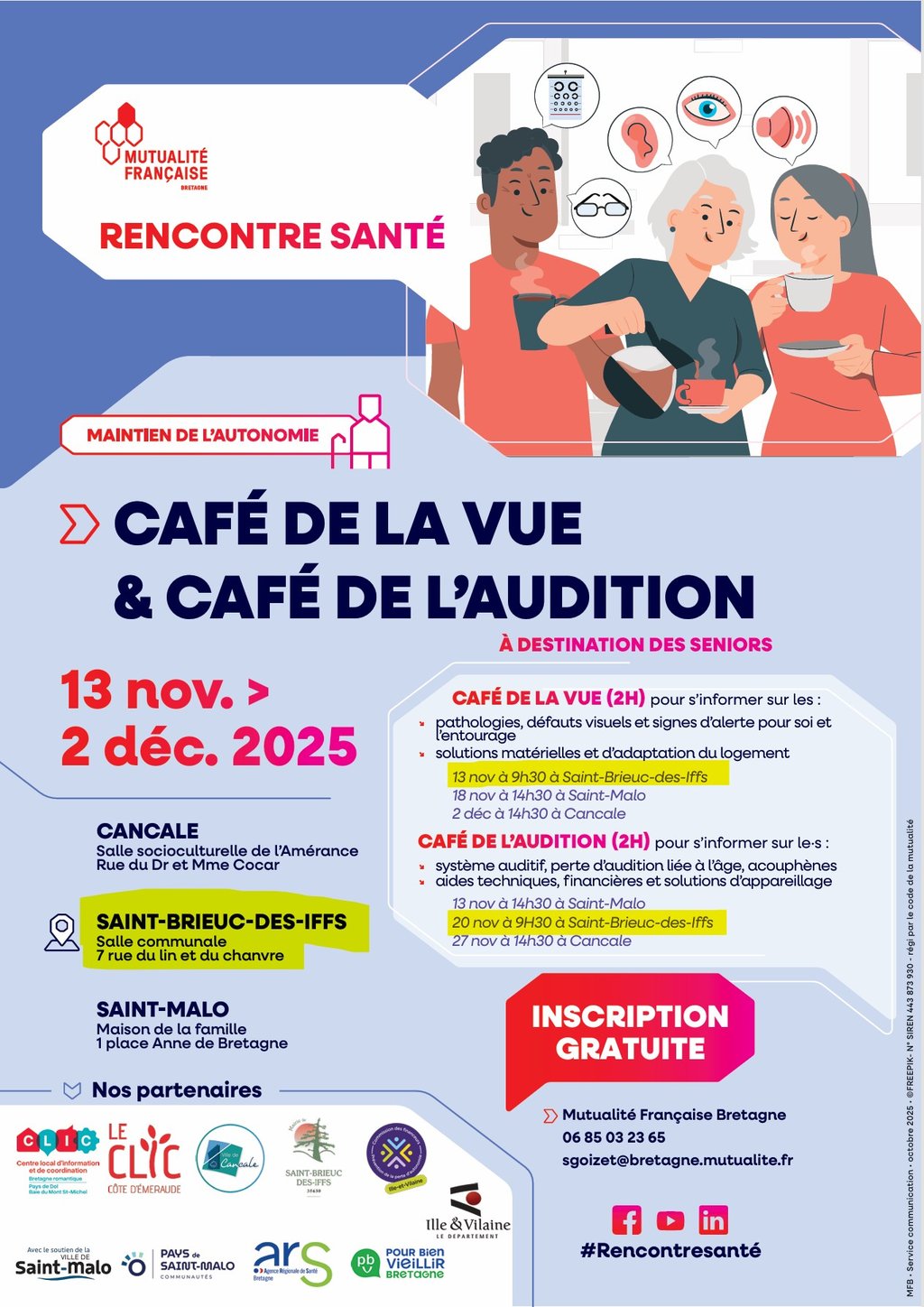CAFÉS DE LA VUE ET DE L'AUDITION : 13 ET 20 NOVEMBRE À SAINT-BRIEUC-DES-IFFS