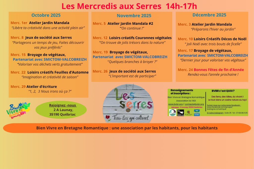 LES MERCREDIS AUX SERRES : DES ACTIVITÉS POUR TOUS À QUÉBRIAC - ASSOCIATION BVBR