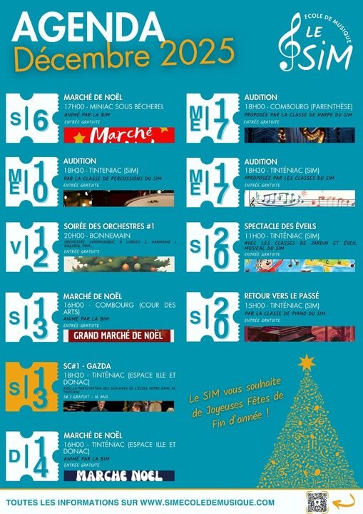 🎵 AGENDA DE L'ÉCOLE DE MUSIQUE SIM EN DÉCEMBRE