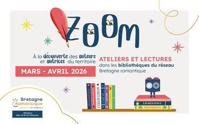 Pour la 2e édition de son cycle d'animations ZOOM, le réseau des bibliothèques vous propose de découvrir des auteurs et autrices de Bretagne romantique à travers des lectures, des ateliers artistiques, et un spectacle conté.