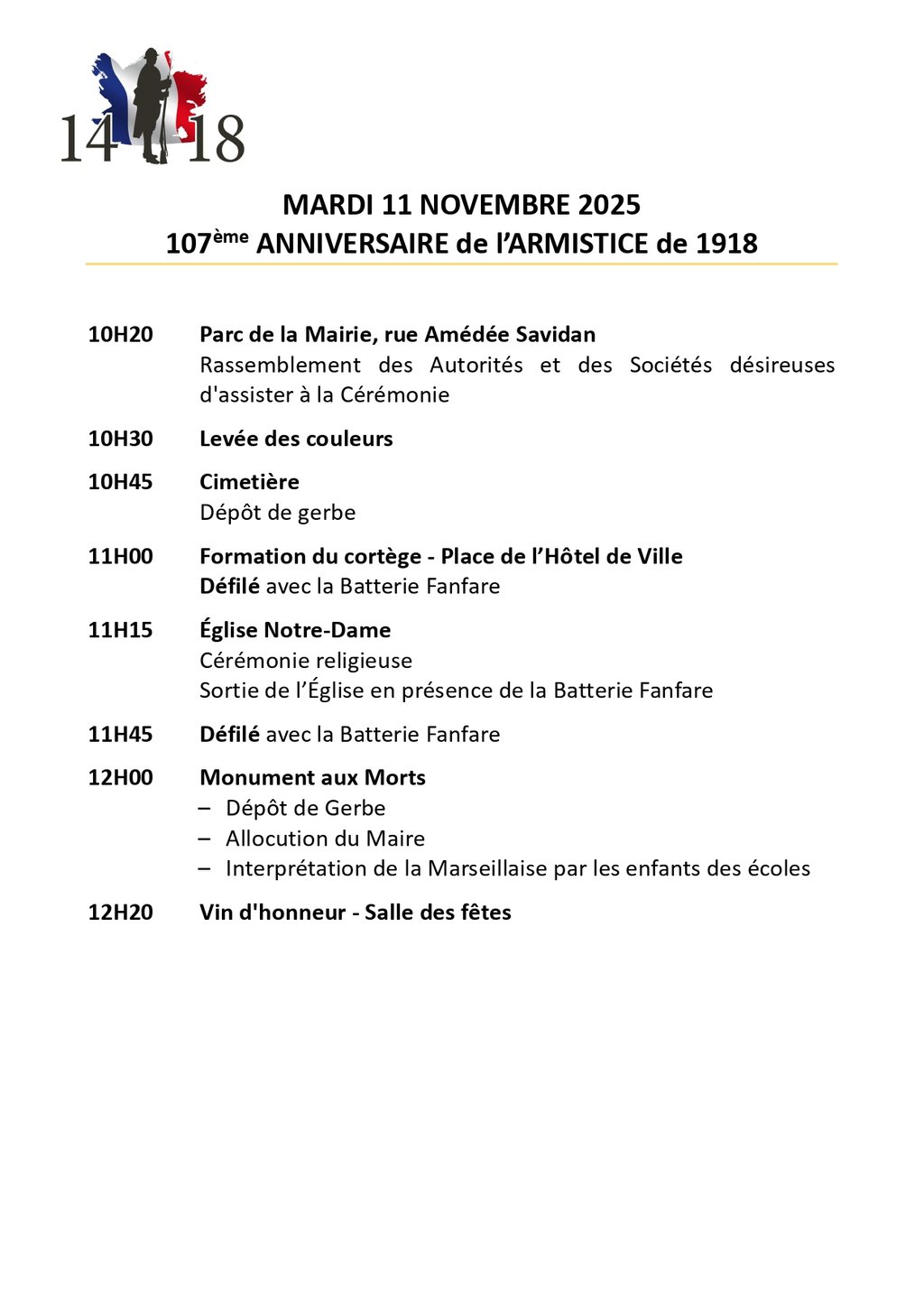 107ème ANNIVERSAIRE de l’ARMISTICE de 1918