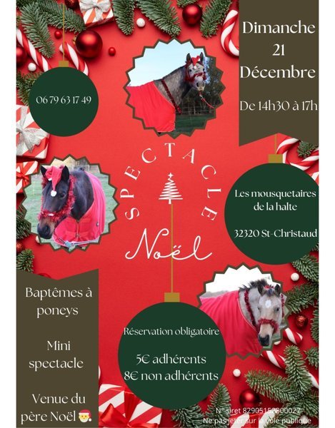 Un mini-spectacle, baptêmes à poney et une visite du Père Noël. Réservation obligatoire.