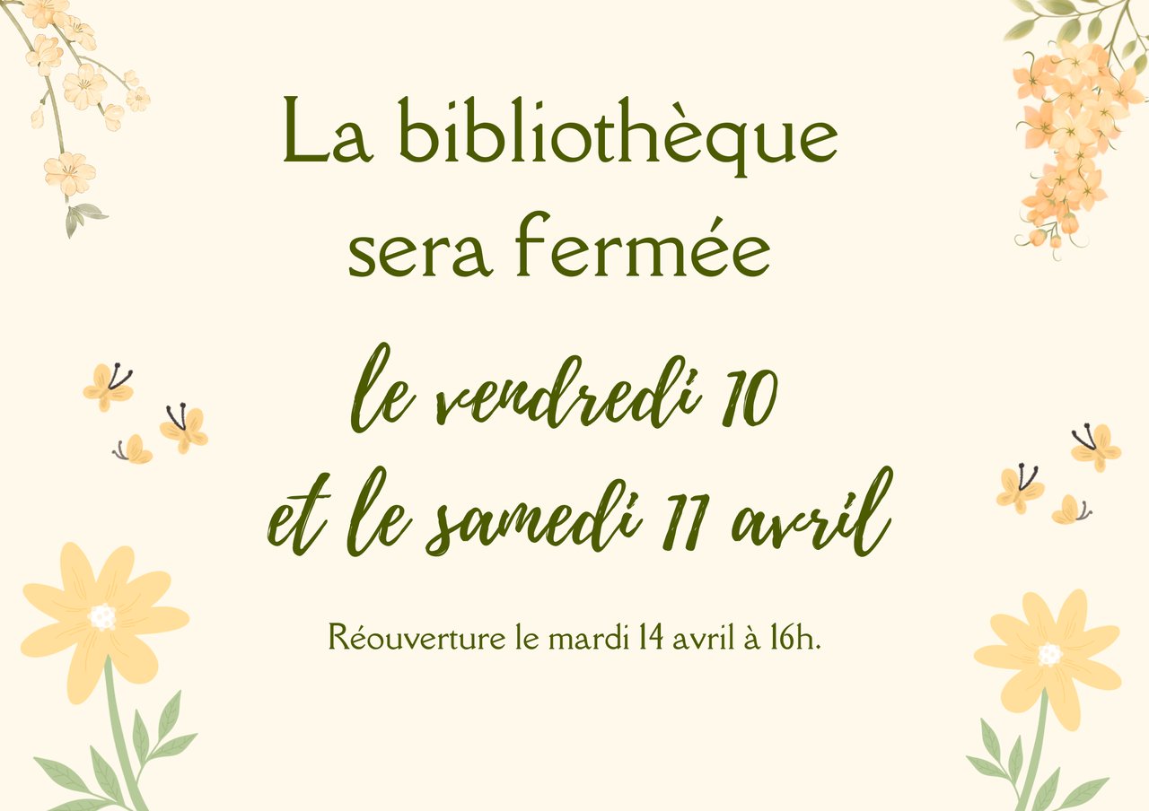 FERMETURE DE LA BIBLIOTHÈQUE LE 10 ET...