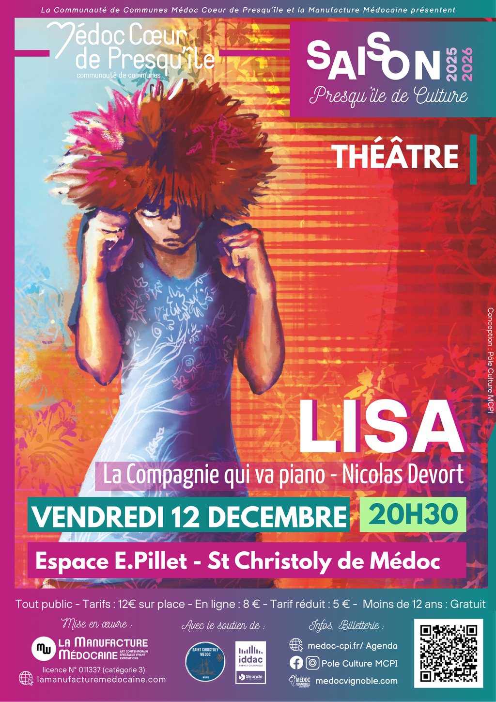SPECTACLE DE THÉÂTRE TOUT PUBLIC ORGANISÉ PAR LA COMMUNAUTÉ DE COMMUNE LE VENDREDI 12 DÉCEMBRE 2025 À 20 H 30.