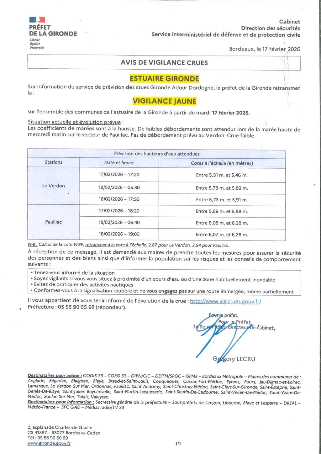 ESTUAIRE DE LA GIRONDE VIGILANCE JAUNE