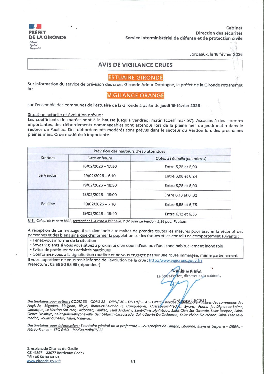 AVIS DE VIGILANCE CRUES A PARTIR DU JEUDI 19 FEVRIER 2026