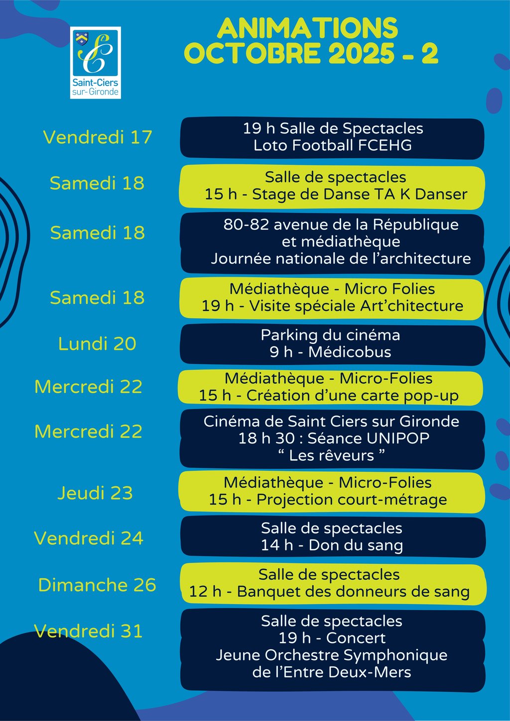 PLANNING DES ACTIVITÉS DU MOIS OCTOBRE 2025-2