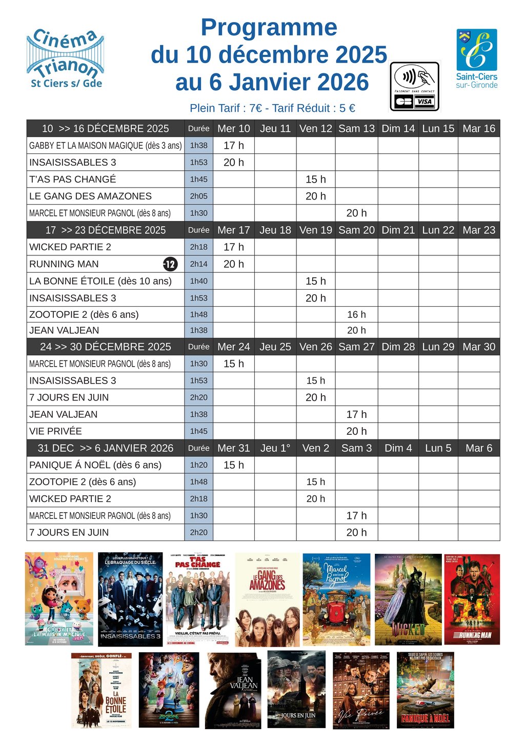 PROGRAMME CINÉMA DÉCEMBRE 2025 - JANVIER 2026