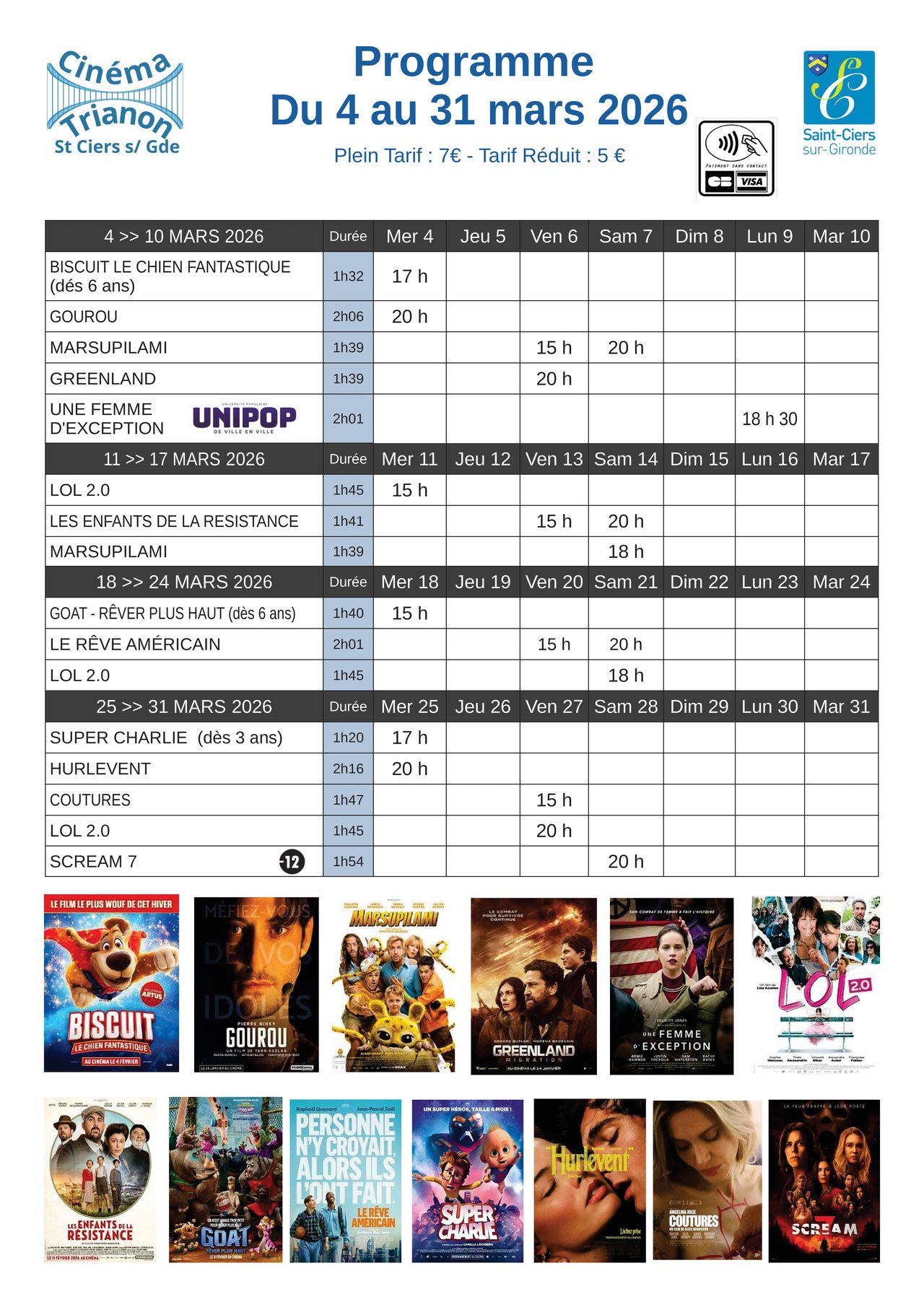 Programme cinema mars 2026