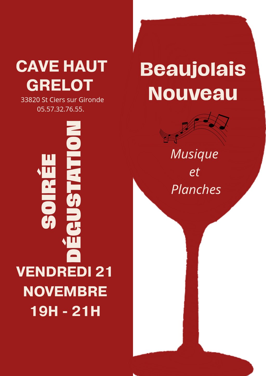 Nous organisons une SOIREE MUSICALE à la CAVE HAUT GRELOT à ST Ciers sur gironde le VENDREDI 21 Novembre.
