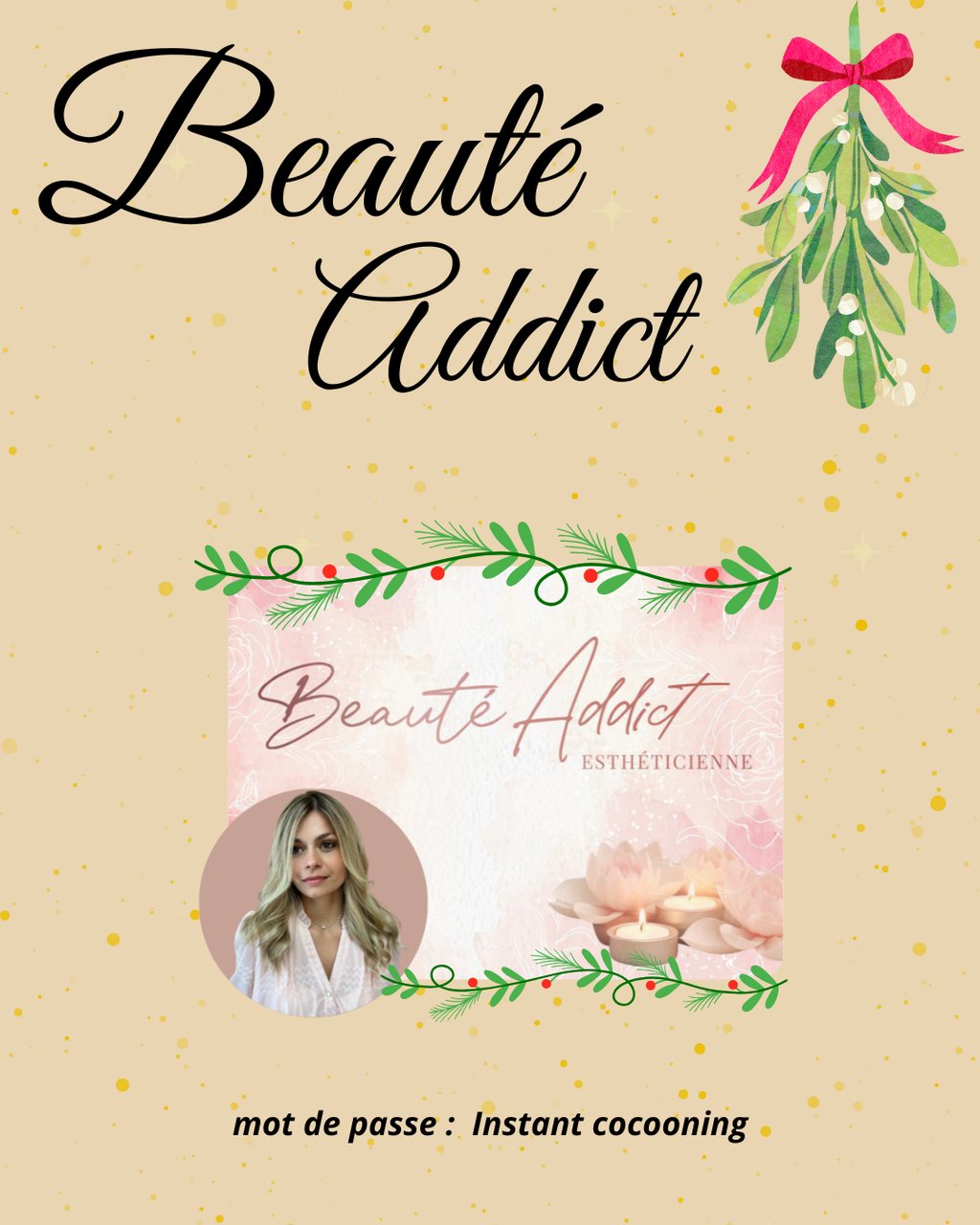 Un lundi tout en douceur ! Beauté Addict est un espace dédié au bien-être et à la beauté, où chaque soin est pensé pour offrir un moment de détente authentique. Charlène vous propose des soins du visage, des massages et d'autres prestations esthétiques dans un cadre intime et chaleureux. Une belle occasion de prendre du temps pour soi avant l’agitation des fêtes. En disant “Instant cocooning”, profitez de 15% sur les soins visage et corps pour tout rendez-vous pris aujourd’hui.