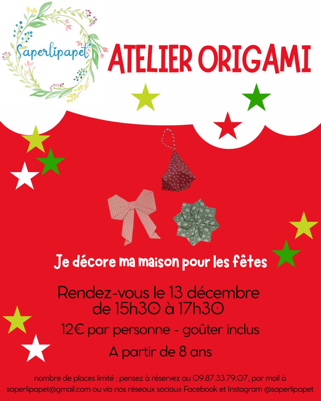 Rejoignez-nous samedi 13 décembre de 15h30 à 17h30 pour un atelier origami plein de créativité et de magie de Noël 🎄🎁