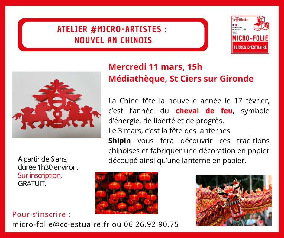 Venez découvrir les traditions de l'Empire du Milieu, à l'occasion du nouvel an chinois, et fabriquez une décoration en papier découpé et une lanterne
