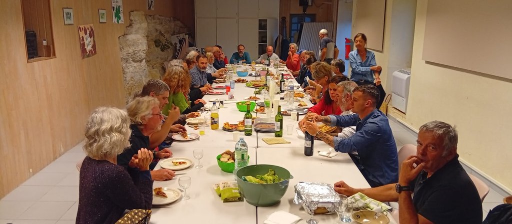 Le soir, la convivialité s'est poursuivie avec une trentaine de personnes réunies pour un repas partagé où chacun a pu déguster les plats délicieux concoctés par tous.