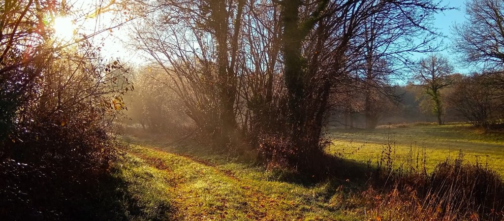La nature nous a offert un spectacle féerique. La gelée blanche scintillait sous un léger soleil voilé de brume matinale donnant à la marche une ambiance particulièrement calme et feutrée.