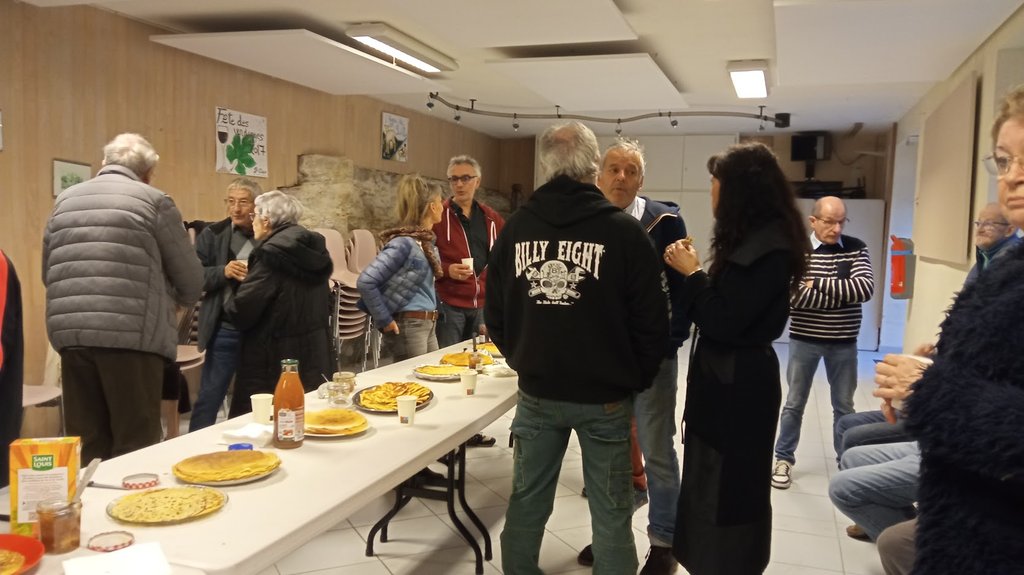 Après cet agréable et convivial intermède, nous nous sommes retrouvés une quarantaine de personnes pour déguster les fameuses crêpes préparées par les bénévoles.