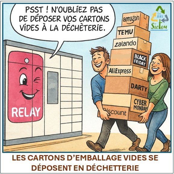 LES CARTONS D’EMBALLAGE VIDES SE DÉPOSENT EN DÉCHETTERIE