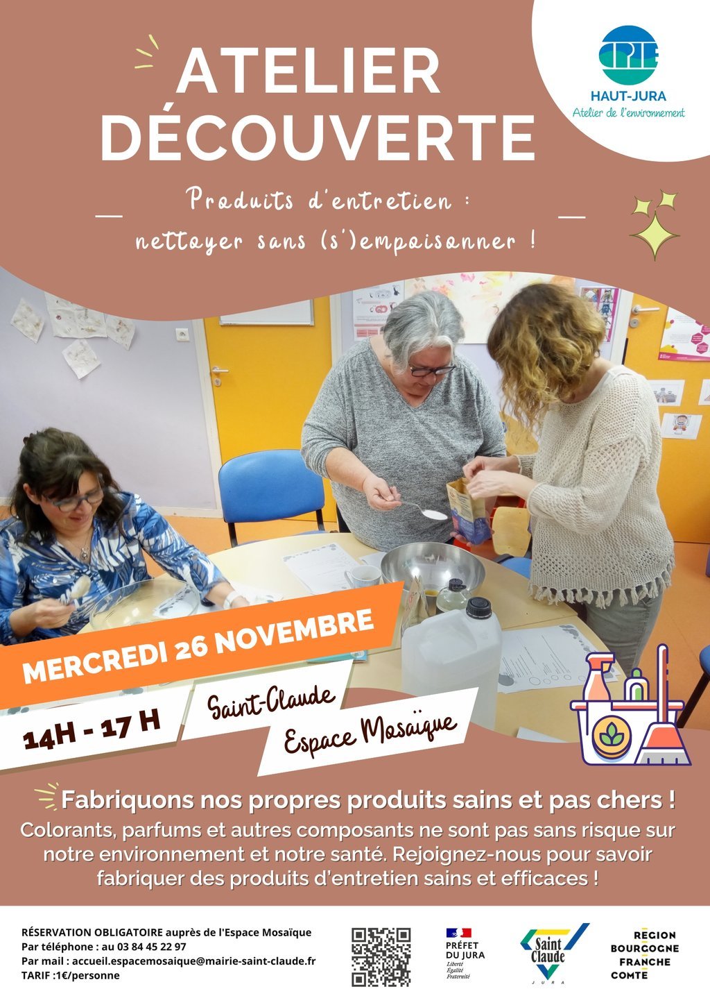 TARIF :1€/personne - RÉSERVATION OBLIGATOIRE auprès de l'Espace Mosaïque par téléphone : au 03 84 45 22 97 ou par mail : accueil.espacemosaique@mairie-saint-claude.fr