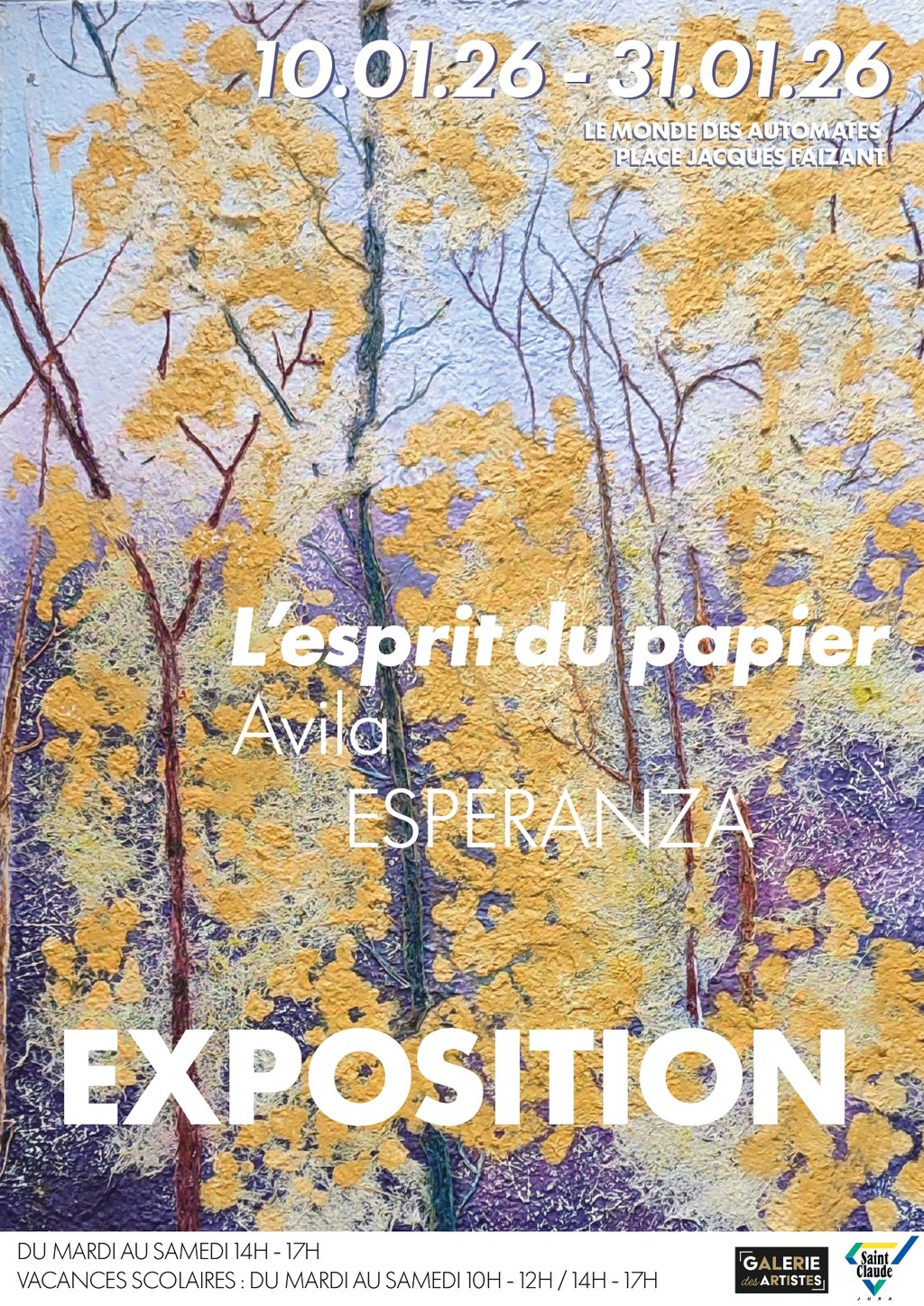 Pour ouvrir la saison culturelle 2026, la Ville de Saint-Claude accueille l’artiste Espéranza Avila à la Galerie des Artistes, avec l’exposition L’esprit du papier. Visible du 10 au 31 janvier 2026, cette exposition invite le public à découvrir un univers sensible et poétique, façonné par la matière végétale.