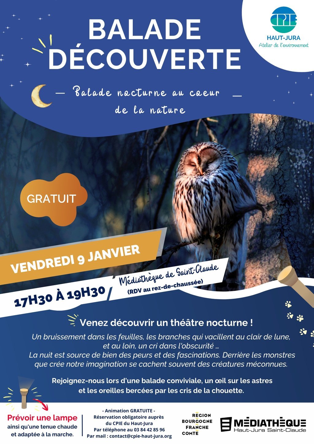Animation GRATUITE – ?N’oubliez pas de prévoir une lampe ainsi qu'une tenue chaude et adaptée à la marche !