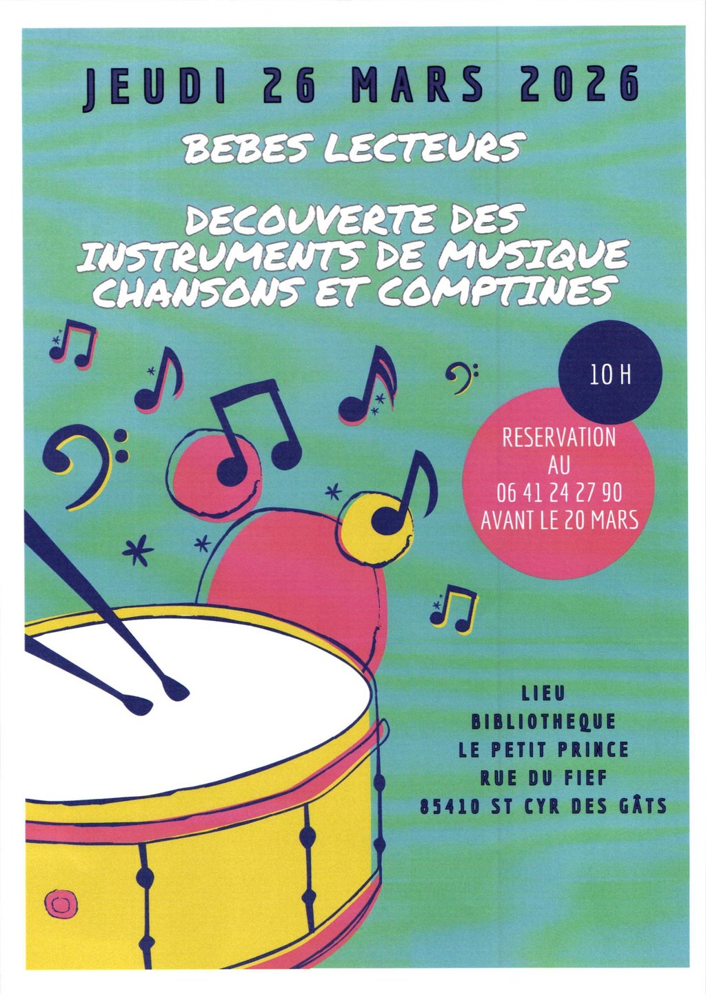 Le jeudi 26 mars 2026 à 10 h 00 sur le thème "Découverte des instruments de musique, chansons et comptines"