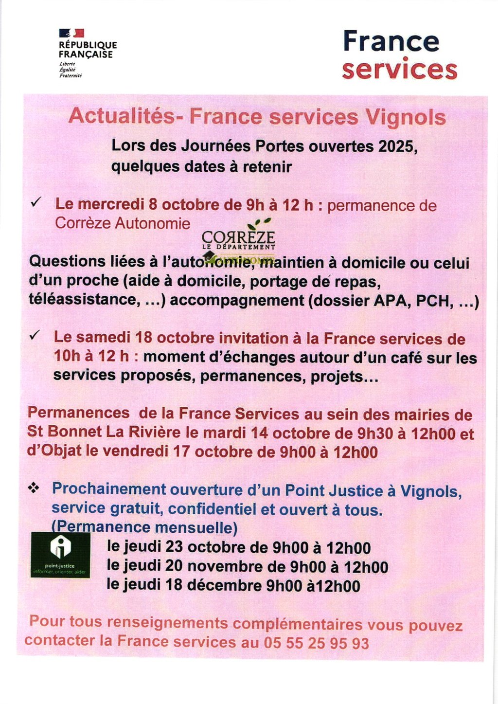 Prochainement ouverture d'un Point Justice à Vignols, service gratuit, confidentiel et ouvert à tous.