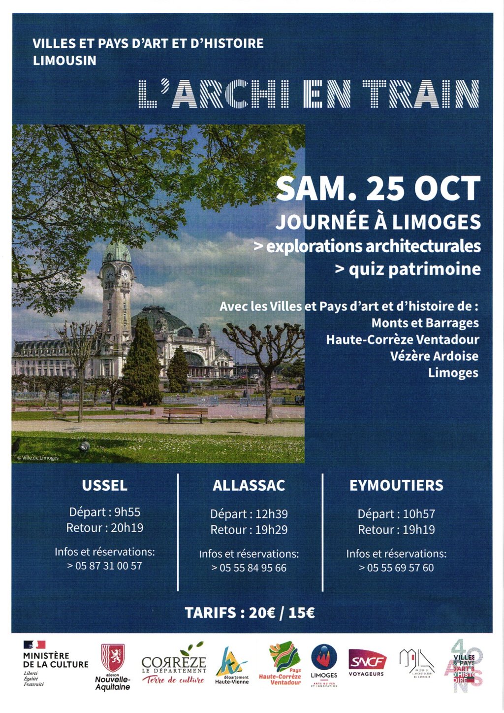 Avec les Villes et Pays d'art et d'histoire du Limousin (Limoges, Monts et Barrages, Haute-Corrèze Ventadour) et en partenariat avec La Maison de l'Architecture du Limousin et les TER Nouvelle-Aquitaine.