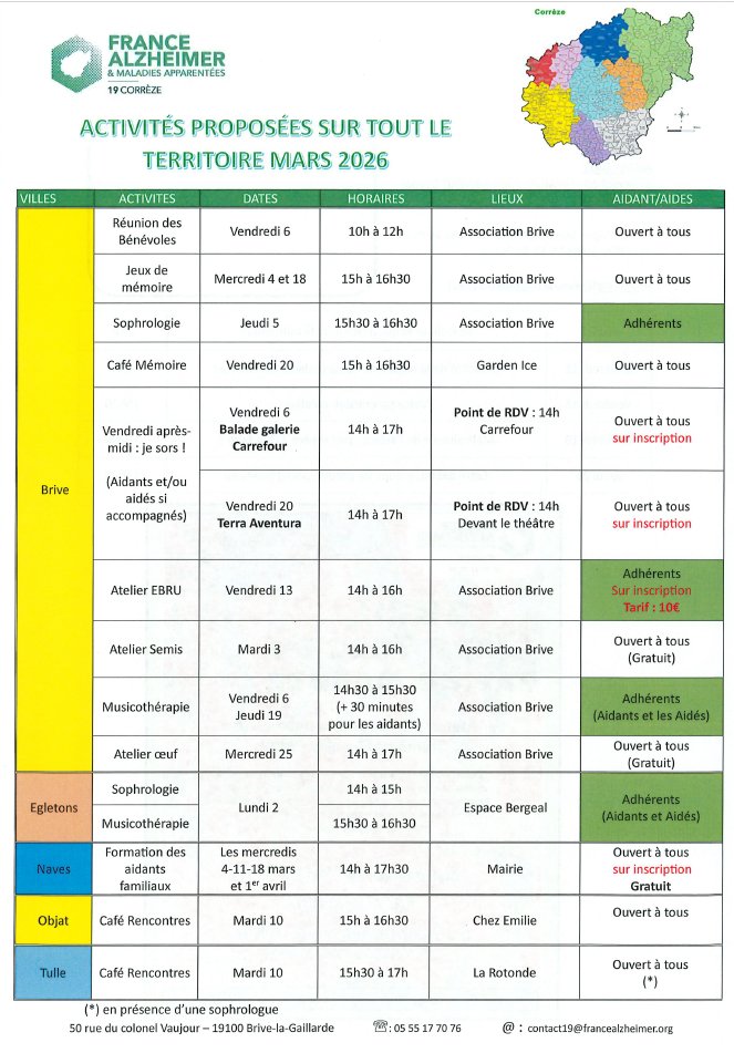 PLANNING DE FRANCE ALZHEIMER CORRÈZE - MARS 2026