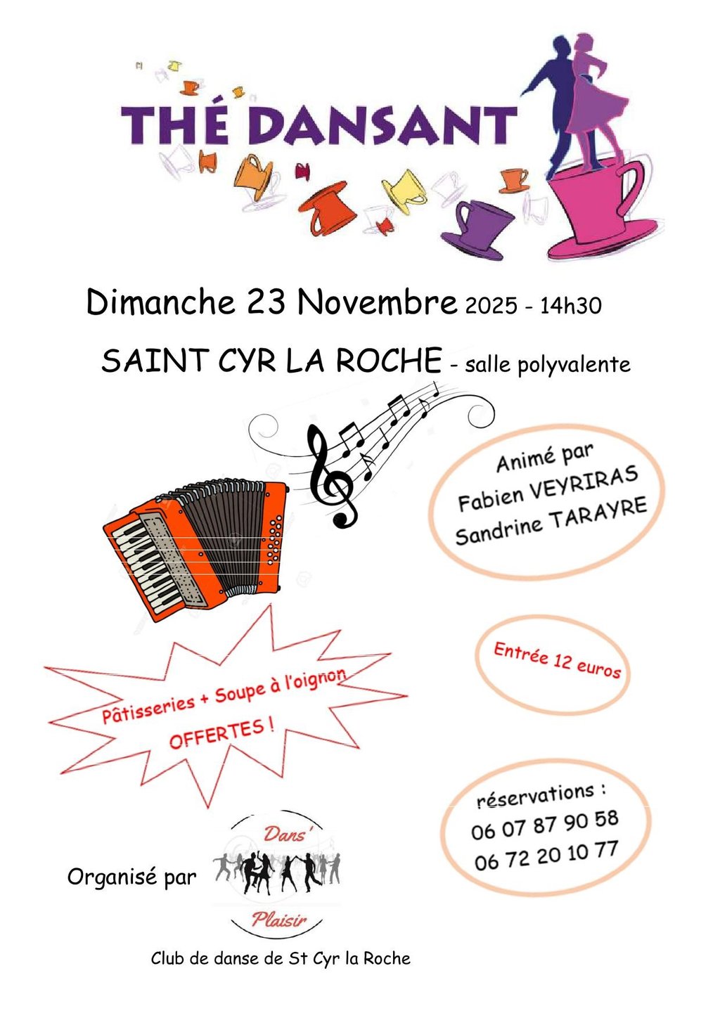 Après midi dansante avec Sandrine Tarayre et Fabien Veyriras le dimanche 23 novembre à la salle polyvalente de Saint Cyr la Roche à partir de 14h30.