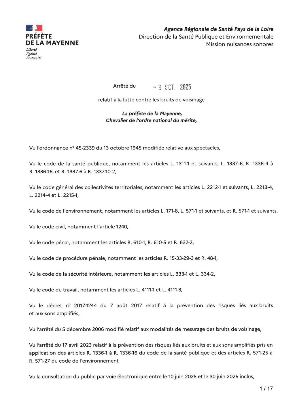 Arrêté préfectoral relatif à la lutte contre les bruits de voisinage
