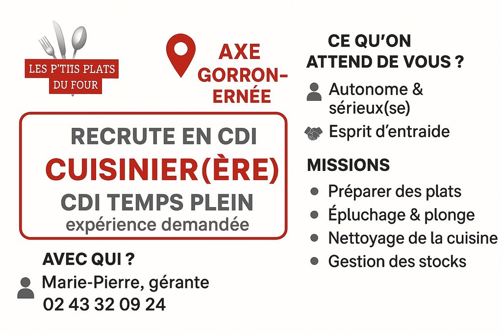 OFFRE D'EMPLOI -CUISINIER(ÈRE)