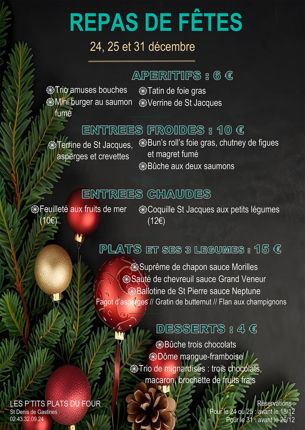 REPAS DE FÊTES 24, 25 et 31 décembre