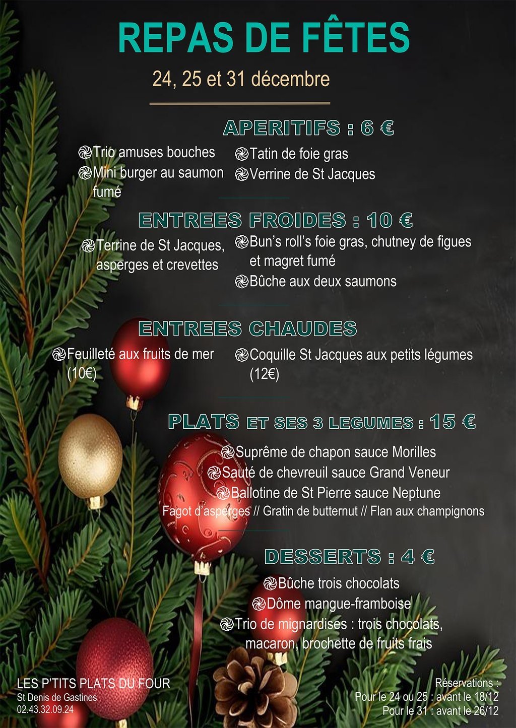 REPAS DE FÊTES 24, 25 et 31 décembre