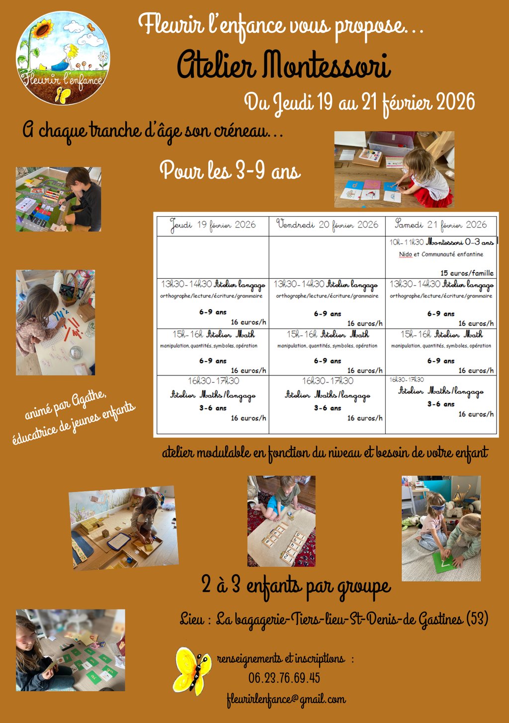 Fleurir l’enfance vous propose des Ateliers Montessori à La Bagagerie, du jeudi 19 au samedi 21 février 2026.