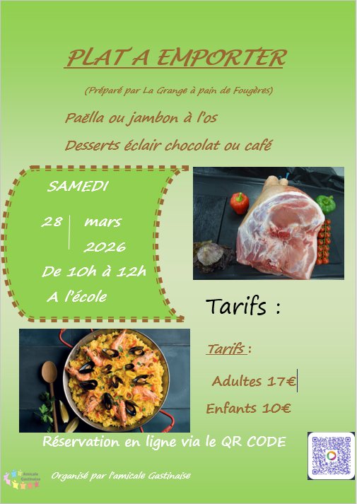 REPAS A EMPORTER organisé par l’amicale gastinaise