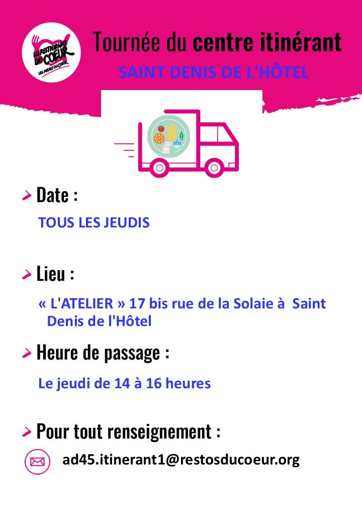 LES RESTOS DU COEUR - TOURNÉE DU CENTRE ITINÉRANT À SAINT-DENIS-DE-L'HÔTEL