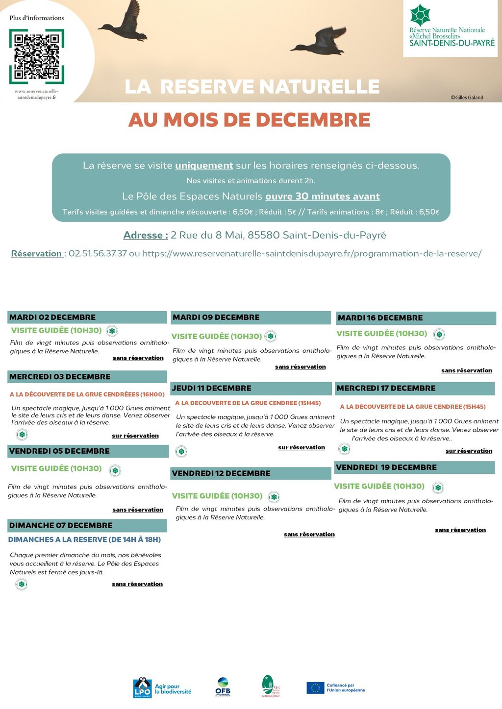 - Ci-joint le programme du mois de décembre de la RNN, Michel Brosselin (voir au dos)