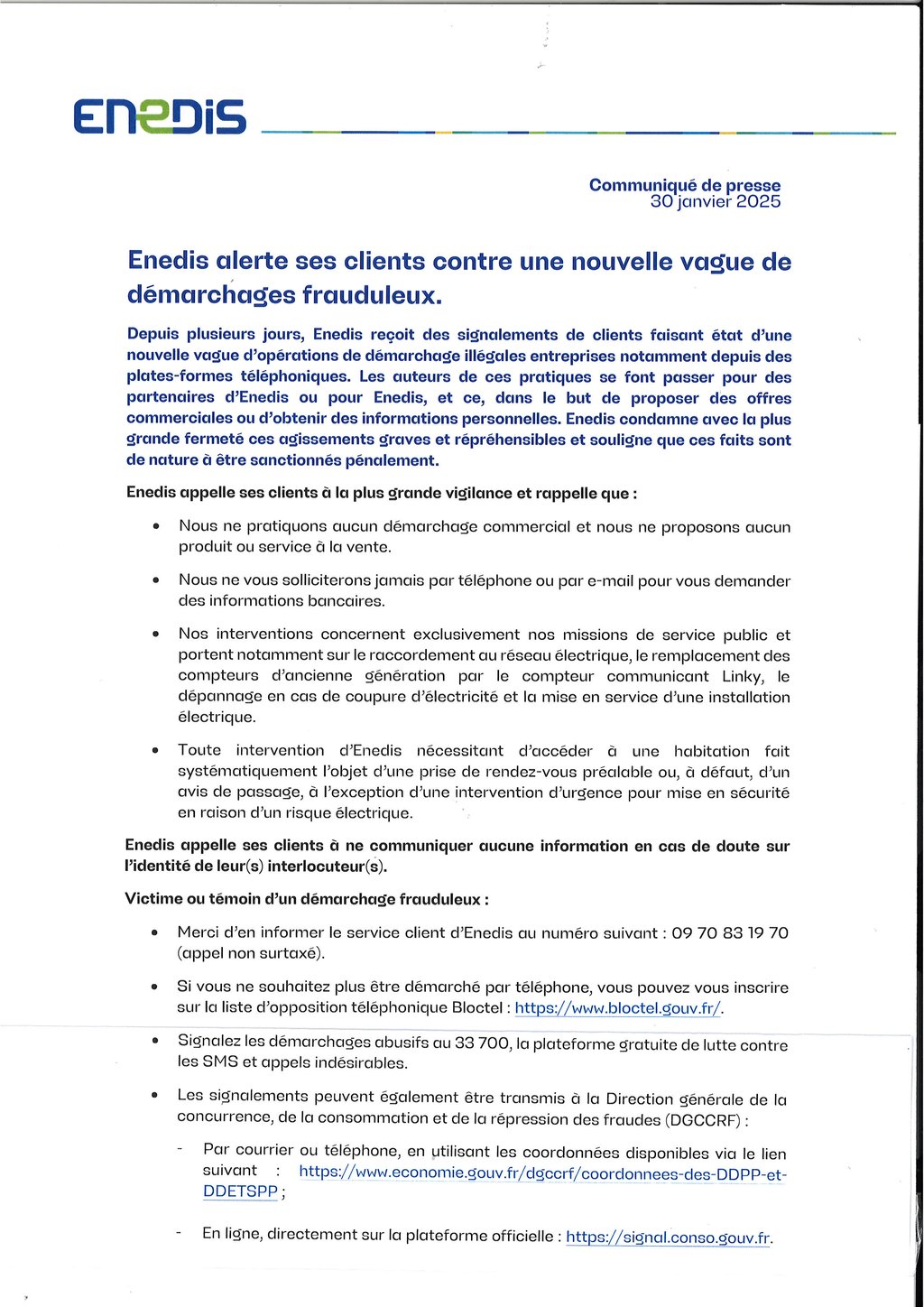 ATTENTION DEMARCHAGES FRAUDULEUX ENEDIS