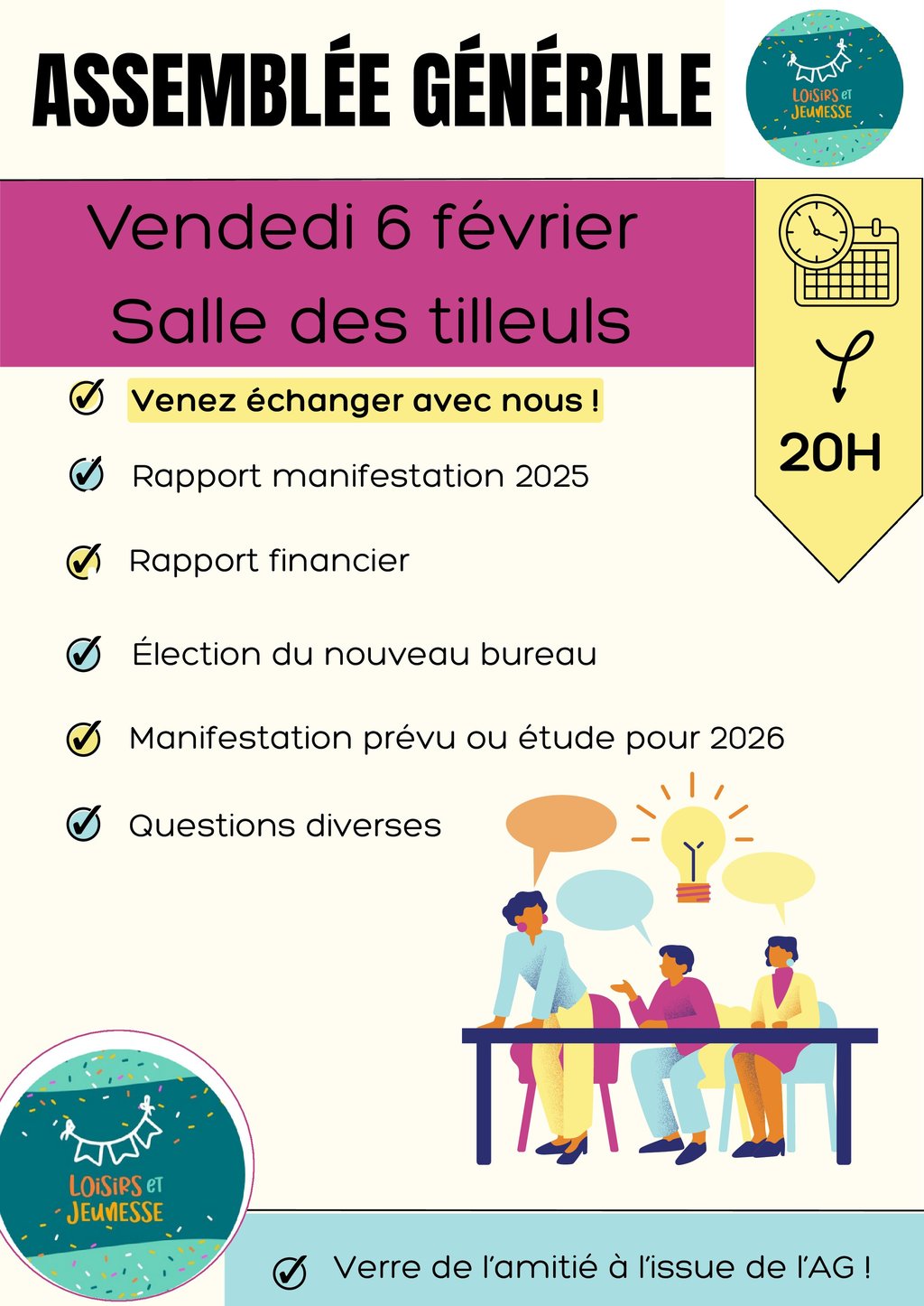 L'assemblée générale de l'association Loisirs & Jeunesse se tiendra le 6 février prochain.