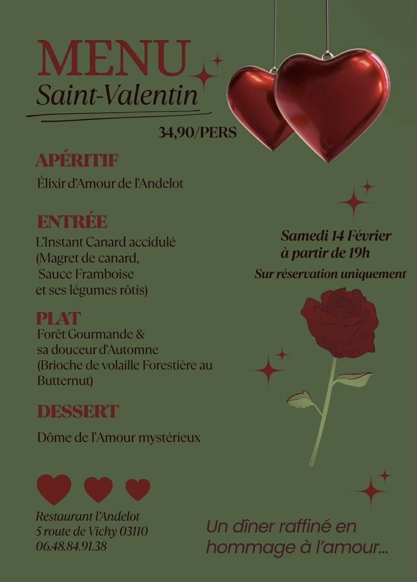 L'Andelot vous propose un menu spécial Saint-Valentin.