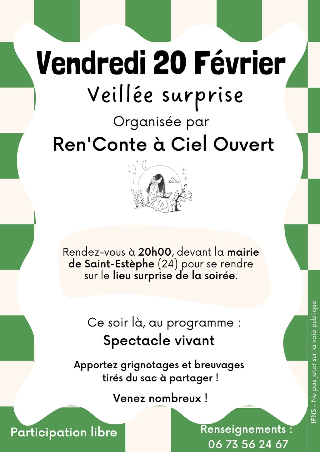 1ère veillée de l'année organisée par Ren'Conte à Ciel Ouvert le vendredi 20 février prochain à 20h00.