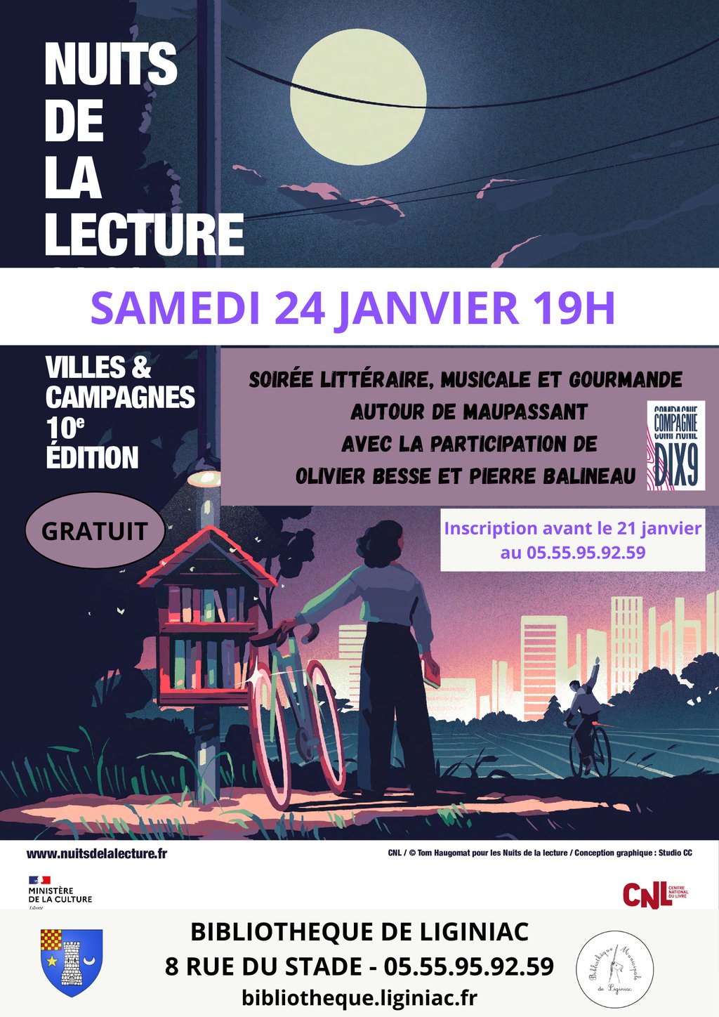 Samedi 24 janvier à 19h : Pour les adultes, une soirée littéraire et gourmande autour de Maupassant, animée par Olivier Besse de la compagnie DIX9 et Pierre Balineau pour la partie musicale. Inscription indispensable avant le mercredi 21 janvier : 05.55.95.92.59. Gratuit