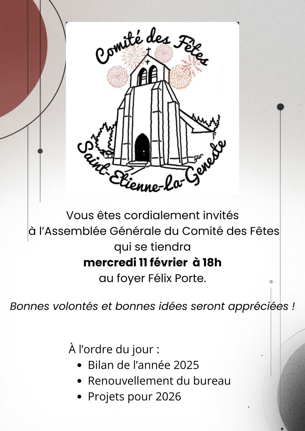 ASSEMBLÉE GÉNÉRALE DU COMITÉ DES FÊTES DE SAINT ETIENNE LA GENESTE